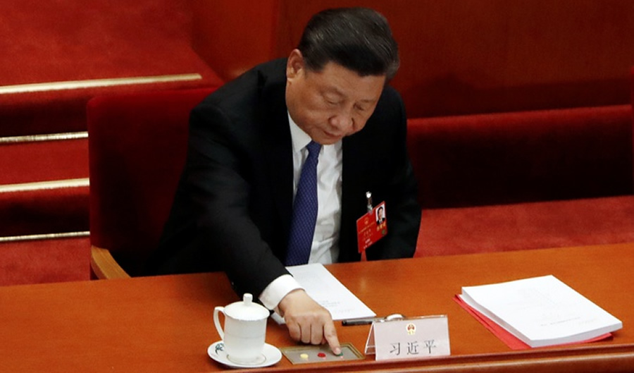 Chủ tịch Trung Quốc Tập Cận Bình bấm nút bỏ phiếu thông qua quyết định của quốc hội về việc trực tiếp ban hành luật an ninh cho Hồng Kông hôm 28-5. Ảnh: Reuters |