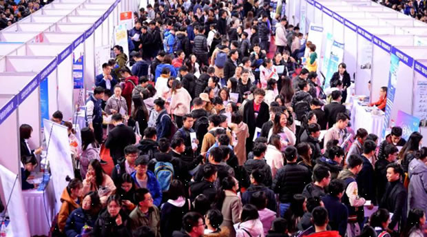 Những người săn việc làm tập trung tại hội chợ việc làm dành cho sinh viên tại Đại học Đông Bắc, tỉnh Liêu Ninh hồi tháng 3-2019. Ảnh: CNN |
