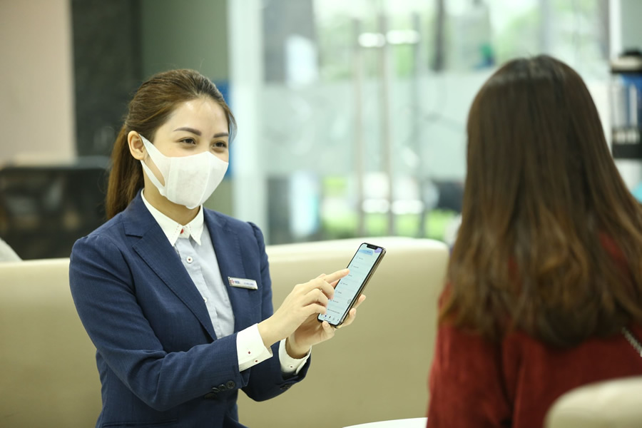 MB đẩy mạnh tư vấn sử dụng app MBbank để giảm tần suất sử dụng tiền mặt cho khách hàng. |
