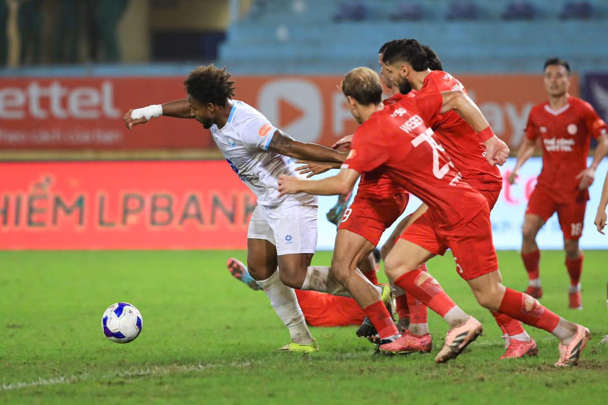 Alan (ngoài cùng bên trái) và Công an Hà Nội có cơ hội nới rộng cách biệt với phần còn lại ở vòng 14.