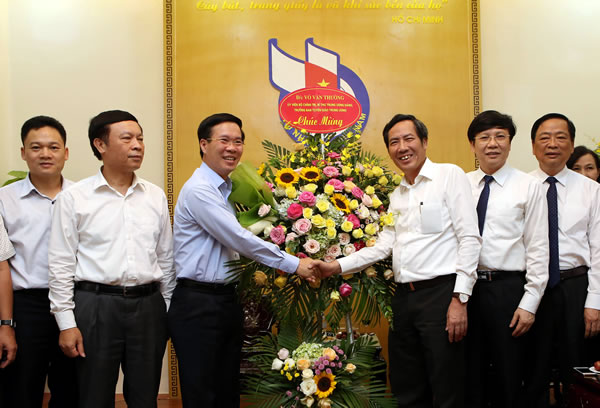 | Trưởng ban Tuyên giáo Trung ương Võ Văn Thưởng thăm Hội Nhà báo Việt Nam. |