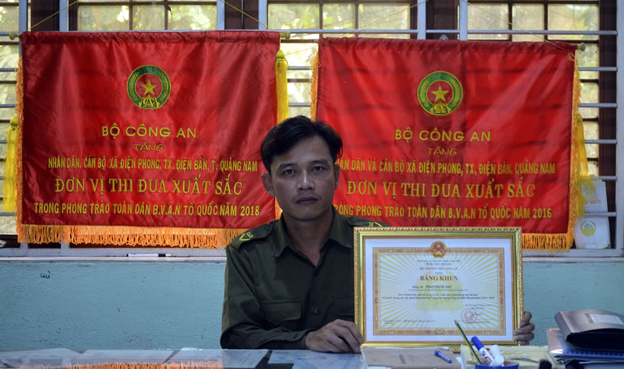 15 năm khoác trên người trang phục CAX, với lòng nhiệt huyết của tuổi trẻ và tinh thần trách nhiệm cao, anh Phan Phước Hải luôn cố gắng hoàn thành tốt những nhiệm vụ mà lãnh đạo UBND xã Điện Phong giao phó. Năm 2015, anh Hải được cấp trên tin tưởng giao nhiệm vụ Trưởng CAX Điện Phong, từ đó anh nỗ lực phát huy hết khả năng để cùng lực lượng CAX đảm bảo ANTT tại địa phương. Anh Phan Phước Hải tâm sự: Xã Điện Phong nằm ở vùng Gò Nổi bị chia cắt thành 3 khu vực rõ rệt, xung quanh tiếp giáp với xã Điện Trung, Điện Minh, Điện An và TT Nam Phước (H. Duy Xuyên) nên công tác quản lý địa bàn gặp rất nhiều khó khăn. Những năm trước, nhiều đối tượng xấu lợi dụng điểm này để thực hiện hành vi phạm pháp khiến tình hình ANTT ở địa phương tương đối phức tạp. "Lúc nhận nhiệm vụ mới, tôi nhận thấy lực lượng CAX ở địa phương mỏng nên công tác vận động nhân dân tham gia giữ gìn ANTT là hết sức quan trọng. Do vậy, tôi đã chủ động tham mưu cho lãnh đạo xã xây dựng nhiều mô hình TDBVANTQ. Trước tiên phải củng cố "Đội dân phòng" ở các thôn, sau đó tiếp tục xây dựng các phong trào "2 giữ về ANTT", "Tổ tự quản về ANTT ở khu dân cư ", "Tiếng kẻng dân phòng", "Tiếng loa an ninh"… Được người dân đồng tình tham gia nên các mô hình hoạt động rất hiệu quả. Qua các mô hình, người dân đã cung cấp cho lực lượng CAX nhiều nguồn tin tố giác tội phạm, phối hợp với CAX truy bắt hàng chục đối tượng trộm cắp tài sản, cướp giật tại địa phương… góp phần làm giảm tội phạm, tệ nạn xã hội ngay tại các thôn xóm. Từ trong phong trào đã nổi lên nhiều cá nhân điển hình tiêu biểu dũng cảm truy bắt các đối tượng trộm cắp, cướp giật được xã, huyện và tỉnh tuyên dương…", anh Hải chia sẻ.