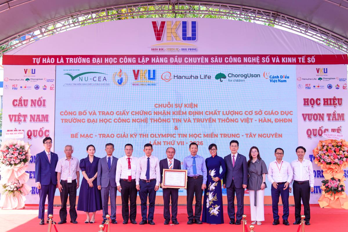 Sáng 12-4, Trường Đại học Công nghệ Thông tin và Truyền thông Việt – Hàn (VKU), Đại học Đà Nẵng tổ chức Lễ công bố và trao Giấy chứng nhận kiểm định chất lượng cơ sở giáo dục. Sự kiện đánh dấu bước ngoặt quan trọng, khẳng định uy tín, chất lượng đào tạo và vị thế của Nhà trường trong hệ thống giáo dục đại học Việt Nam.