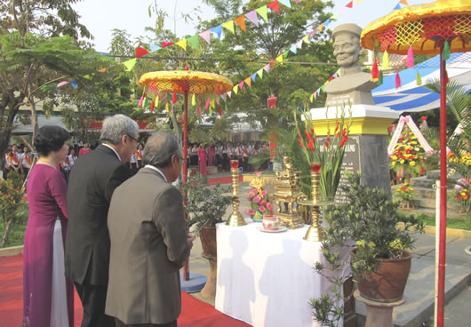 Các thế hệ thầy cô dâng hương cụ Huỳnh Thúc Kháng. |