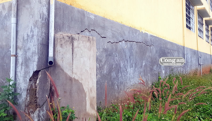 Vết nứt phần móng chạy dọc theo tường đe dọa đến an nguy của học sinh và giáo viên nơi đây. |