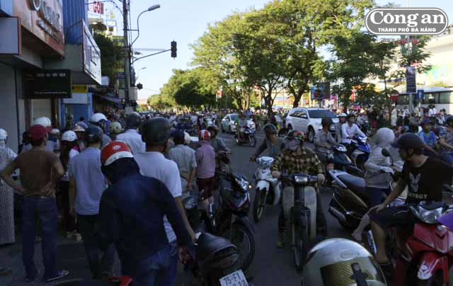| Người dân hiếu kỳ chứng kiến vụ chém nhau giữa phố. |