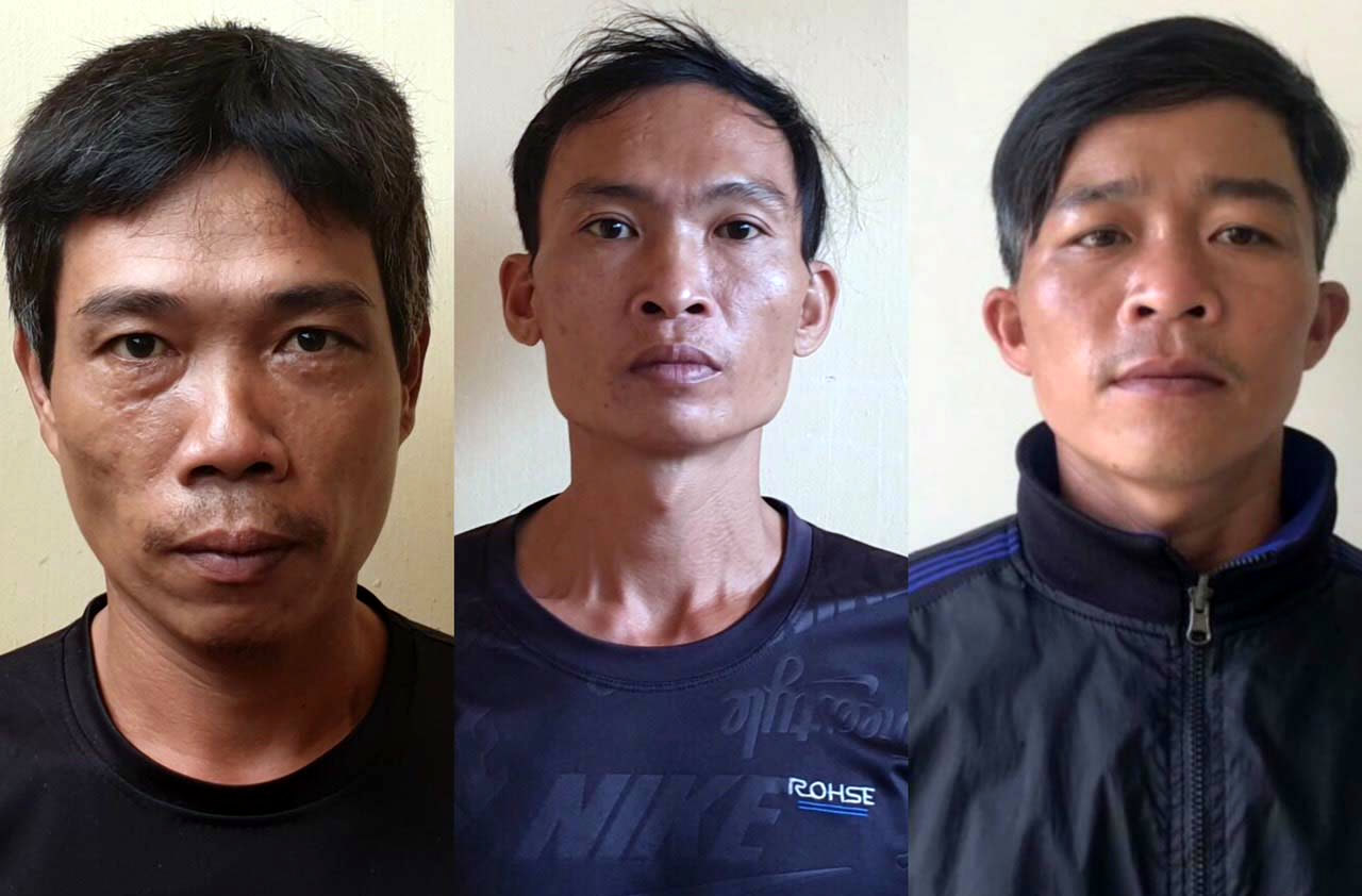 Từ trái sang: 3 đối tượng Thông, Châu, Dần tại cơ quan Công an.
