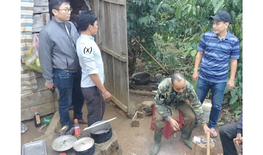 Các đối tượng Tuấn và Cao (X) tại căn chòi giam giữ ông V. |