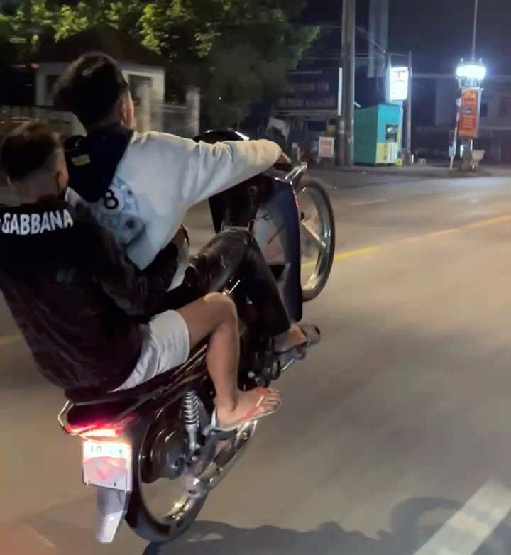 Trước đó, sáng 15-1, trên mạng xã hội lan truyền đoạn clip ghi lại cảnh 2 nam thanh niên không đội mũ bảo hiểm cùng đi trên xe máy che BKS, rồi bốc đầu xe, chạy bằng 1 bánh, lạng lách trên QL20 (đoạn qua chợ Mađaguôi, xã Đạ Huoai, Lâm Đồng). Ngay khi nắm thông tin, Trạm CSGT Mađaguôi khẩn trương xác minh, làm rõ danh tính “quái xế” trong clip được xác định là Nguyễn Đức Bảo Long (trú xã Bảo Lâm 2, Lâm Đồng). Theo đó, Long điều khiển xe máy BKS 49L1-168.xx (xe của Đào Quang Huy, 2008) chở một người bạn rồi bốc đầu xe máy, chạy bằng 1 bánh một đoạn đường dài. Còn Nguyễn Hữu Sang (2009, trú xã Đạ Huoai 2) dùng điện thoại quay clip rồi đăng lên Facebook.
