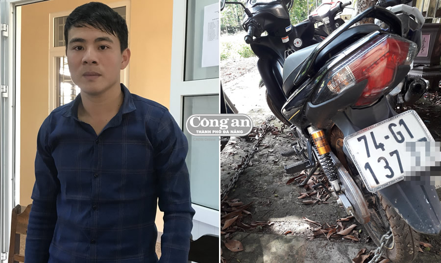 | Bị can Nguyễn Văn Vi và phương tiện đi gây án. |