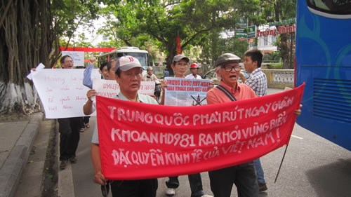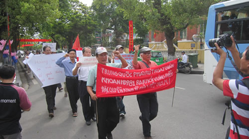 * Tại Hà Nội, ngay từ sáng sớm, nhiều người dân trong sắc áo đỏ màu cờ Tổ quốc đã có mặt trước Đại sứ quán Trung Quốc trên đường Hoàng Diệu, tay cầm băng-rôn, khẩu hiệu phản đối, sau đó, dòng người tuần hành qua các đường phố khu vực trung tâm Thủ đô.