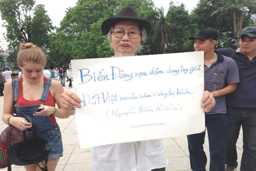 | Trong dòng người xuống đường ở Hà Nội có ông Nguyễn Khắc Mai, nguyên Vụ trưởng Vụ Nghiên cứu - Ban Dân vận TƯ, hiện là Giám đốc Trung tâm nghiên cứu văn hóa Minh Triết |