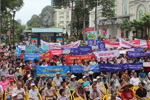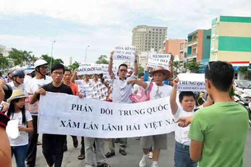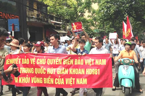 (Cadn.com.vn) - Sáng nay, 11-5, hàng nghìn người dân các thành phố lớn, như Hà Nội, TPHCM, Đà Nẵng, Huế… đã xuống đường tuần hành phản đối hành động đặt giàn khoan trái phép Hải Dương-981 (HD-981) của nhà cầm quyền Trung Quốc tại khu vực quần đảo Hoàng Sa của Việt Nam.