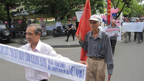 Sáng 11-5, trước mặt công viên Tứ Tượng trên đường Lê Lợi (TP.Huế), đông đảo người dân Huế xuống đường tuần hành ôn hòa nhằm cực lực lên án hành vi ngang ngược của Trung Quốc xâm phạm trắng trợn hải phận của Việt Nam, trước dư luận quốc tế và trước quốc dân đồng bào. Yêu cầu Trung Quốc rút ngay giàn khoan HD981 ra khỏi hải phận Việt Nam. Đồng thời, khẳng định Hoàng Sa-Trường Sa mãi mãi thuộc tổ quốc thiêng liêng của Việt Nam.