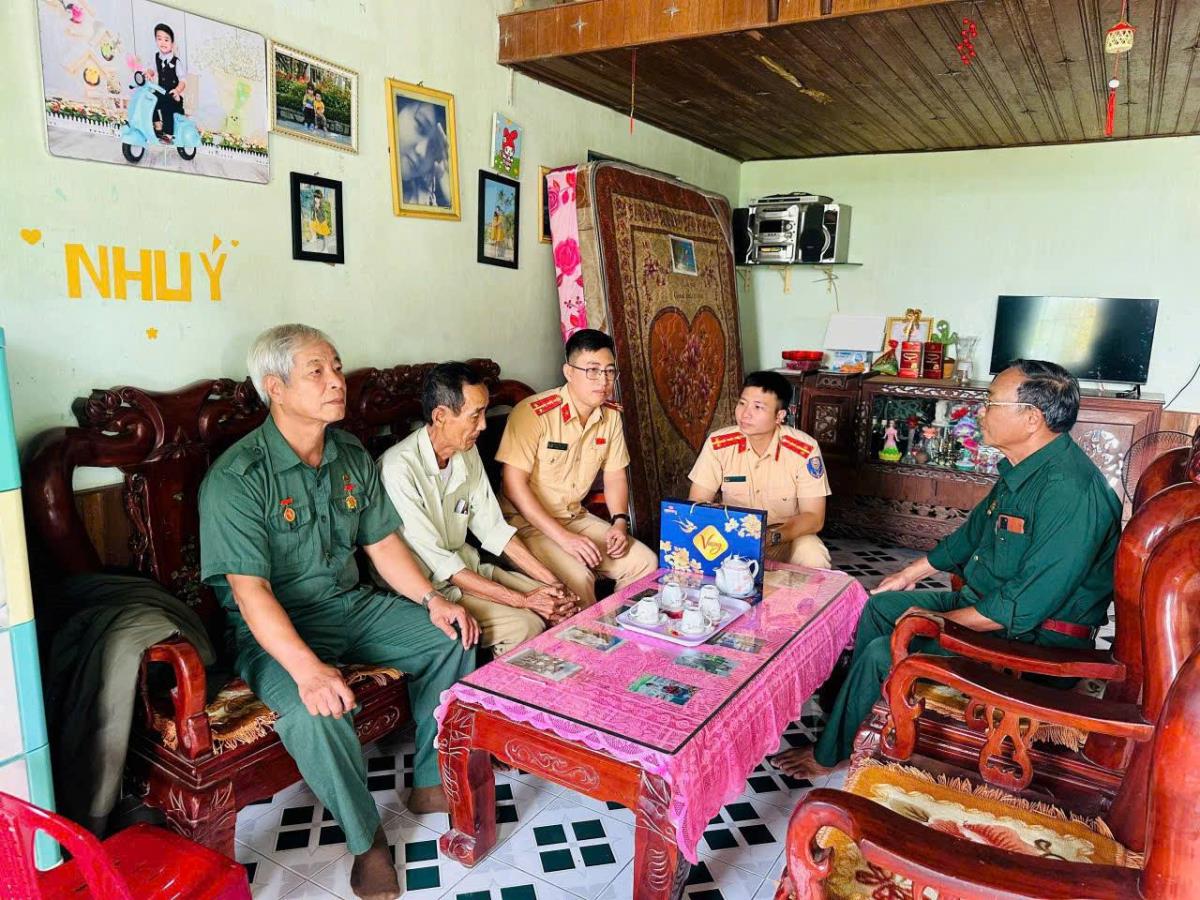 Đoàn viên lực lượng Cảnh sát giao thông thăm hỏi, tặng quà các cựu thanh niên xung phong từng tham gia chiến trường Campuchia.