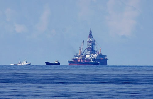 | Tàu Trung Quốc bảo vệ giàn khoan trái phép, xâm phạm vùng đặc quyền kinh tế của Việt Nam. |