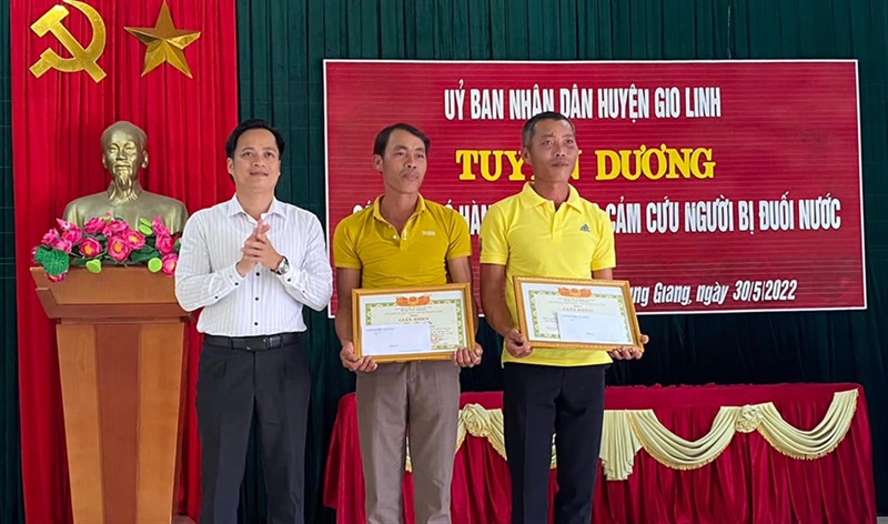 Ngày 30-5, UBND H. Gio Linh (Quảng Trị) đã tuyên dương, khen thưởng 2 ngư dân: Phan Thanh Tuấn và Phan Thanh Tú (cùng trú xã Trung Giang, H. Gio Linh) đã có hành động dũng cảm cứu người bị đuối nước.
