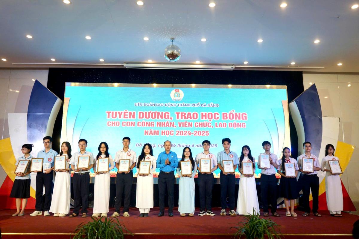 Sáng 6-6, Liên đoàn Lao động (LĐLĐ) thành phố Đà Nẵng tổ chức Chương trình tuyên dương, khen thưởng và trao học bổng cho con công nhân, viên chức, lao động (CNVCLĐ) đạt thành tích xuất sắc và vượt khó vươn lên trong học tập năm học 2024–2025. Đây là hoạt động thường niên hưởng ứng Tháng Hành động vì trẻ em năm 2025, với chủ đề “Ưu tiên nguồn lực hoàn thành các mục tiêu vì trẻ em”.