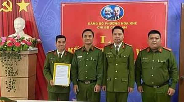 Trung tá Trương Huy Chương khen thưởng CAP Hòa Khê. |