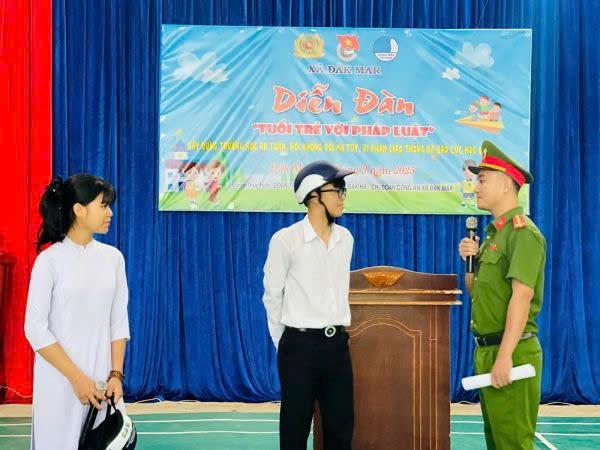 Nhằm nâng cao nhận thức pháp luật và xây dựng môi trường trường học đường an toàn, ngày 16-9, Công an xã Đăk Mar (tỉnh Quảng Ngãi) phối hợp với Đoàn Thanh niên xã tổ chức diễn đàn “Tuổi trẻ với pháp luật” tại Trường Phổ thông Dân tộc Nội trú THPT Đăk Hà. Chương trình thu hút sự tham gia sôi nổi của hơn 600 học sinh và các thầy cô giáo trong trường.