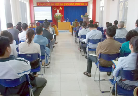 Các chủ cơ sở kinh doanh có điều kiện về ANTT dự buổi tuyên truyền. |