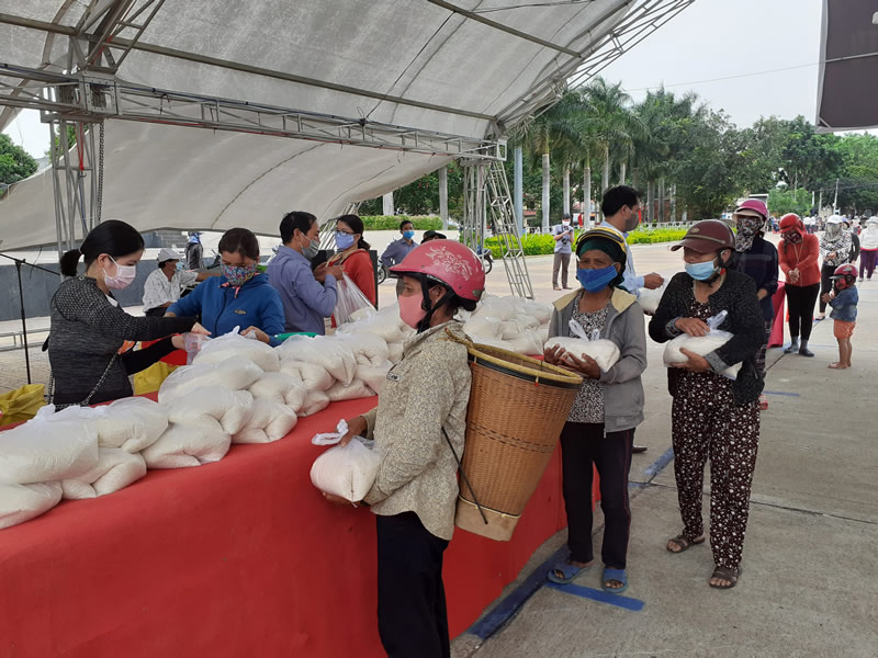 * KON TUM - Chiều 15-4, hàng trăm người dân phố núi bị ảnh hưởng bởi dịch cũng đã nhận được nhiều suất gạo miễn phí từ sự vận động của UBND TP Kon Tum. Ông Phan Ngọc Định - Phó Chủ tịch UBND TP Kon Tum cho biết, bước đầu các nhà hảo tâm, các doanh nghiệp hỗ trợ được số lượng 40 tấn gạo. Số gạo này được tổ chức trao cho bà con nhân dân, mỗi người có mặt được nhận 3kg. Hiện nay TP đang tiếp tục vận động các doanh nghiệp và nhà hảo tâm nhằm quyên góp thêm để tặng cho bà con.