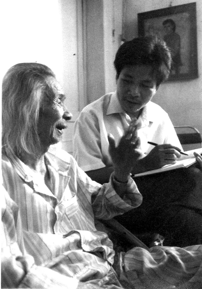 Lê Minh Quốc phỏng vấn nhạc sĩ Văn Cao tại nhà riêng của ông ở Hà Nội (1994). |