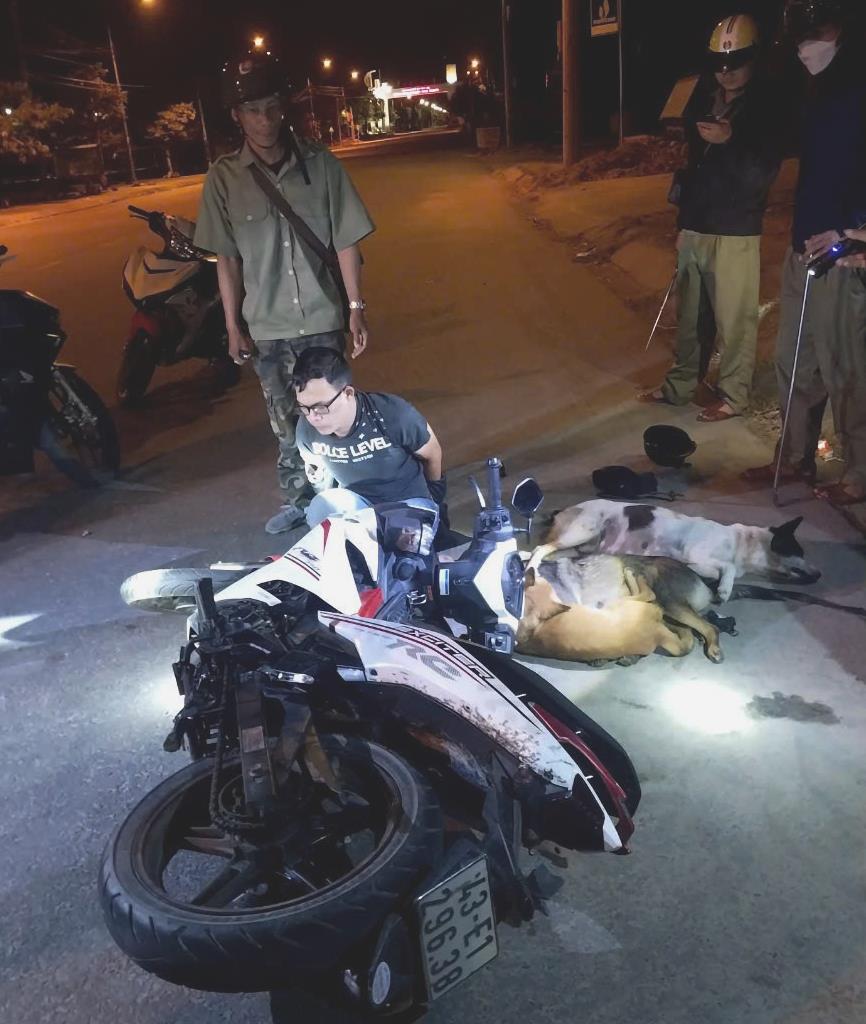 Khi đối tượng đang di chuyển đến khu vực đường Nguyễn Văn Trỗi (thuộc thôn Vĩnh Bình, xã Tam Thăng) thì bị lực lượng chức năng khống chế, bắt giữ. Qua kiểm tra mô-tô hiệu Exciter BKS 43E1-29638 của đối tượng đang sử dụng, tổ công tác phát hiện có 3 con chó đã chết. Qua khai thác, đối tượng khai nhận đã thực hiện hành vi bắt trộm chó của người dân trên các đoạn đường thuộc Quốc lộ 1A (tuyến từ TP Đà Nẵng và tỉnh Quảng Nam). Kết quả xác minh ban đầu xác định đối tượng thực hiện hành vi trộm cắp tài sản trên là T.C.T. (1992, trú phường Mân Thái, quận Sơn Trà, TP Đà Nẵng).