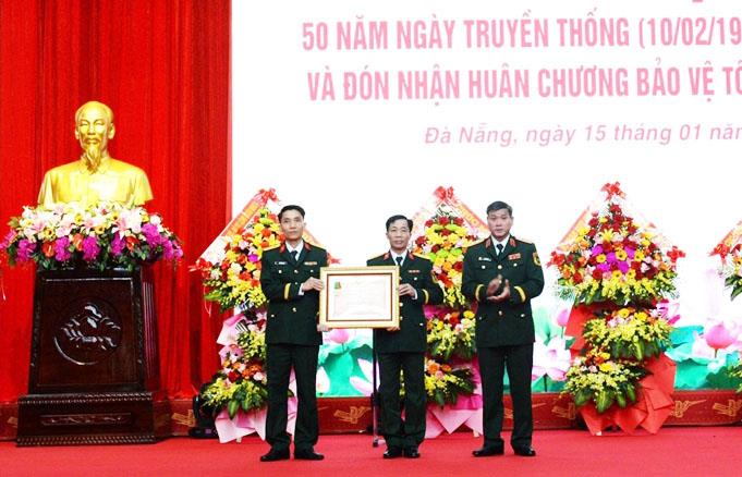 Thừa ủy quyền của Chủ tịch nước, Trung tướng Lê Ngọc Hải trao Huân chương Bảo vệ Tổ quốc hạng Ba tặng Văn phòng Đảng ủy Bộ Tư lệnh Quân khu 5.