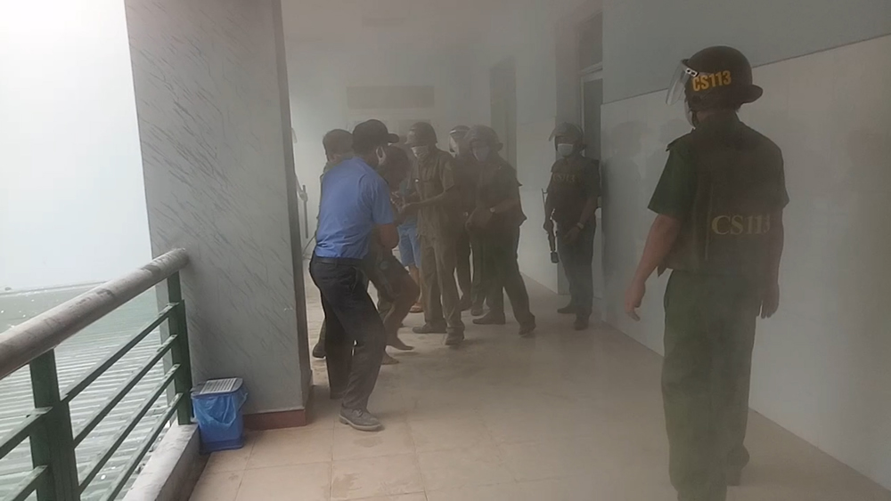Lực lượng CA và nhân viên bệnh viện khống chế đối tượng. |