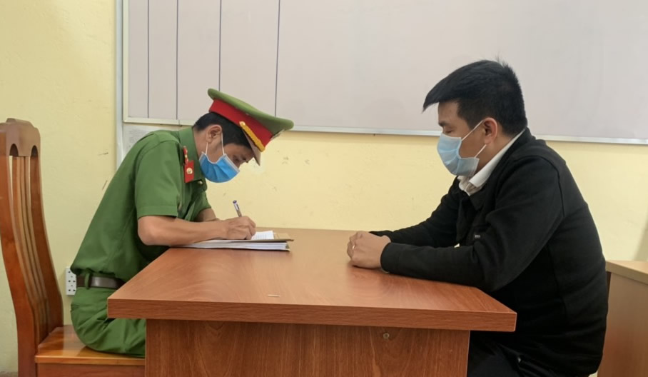 Công an huyện Đắk Rlấp ghi lời khai của đối tượng Thuận. |