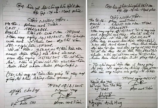 Giấy vay nợ của Phạm Anh Tuấn. |