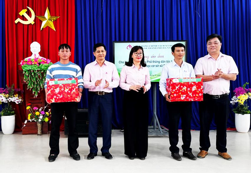 Lãnh đạo VBSP Đà Nẵng tặng áp ấm cho học sinh 2 trường phổ thông dân tộc nội trú tiểu học và trung học cơ sở tại xã Đắc Pring.