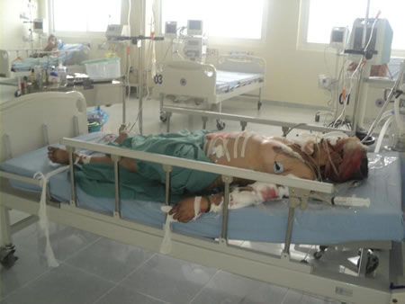 Bà Trần Thị Nga đang điều trị tại bệnh viện trong tình trạng nguy kịch. |