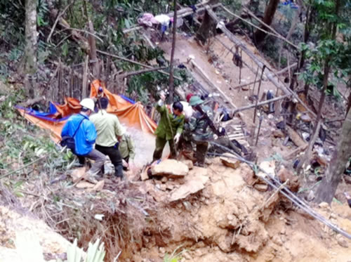 CAH A Lưới phối hợp với BĐBP phá hủy lán trại các đối tượng khai thác vàng trái phép. |