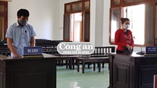 Bị cáo Quốc và người bị hại Th. tại phiên xét xử. |