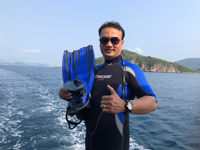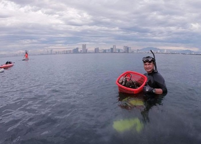 Ngoài nhặt rác trên bờ, anh Trung cũng thường xuyên lặn nhặt rác dưới đáy biển. Vốn là huấn luyện viên các môn thể thao dưới nước nên việc lặn xuống đáy biển đối với anh Trung không khó. Hằng tuần anh dành ra vài tiếng đồng hồ để vào vai “người nhái” nhặt rác. Anh Trung bảo, đáy biến vốn không có rác nhưng xuất phát từ ý thức kém của một số người nên các hệ sinh thái dưới nước đã bị đe dọa. Có những rạn san hô đẹp mê lòng người đã chết vì bị những chai lọ, vỏ lon đè.
