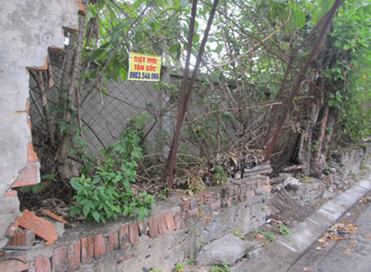 Chỉ về phía tường rào của Cty Cổ phần Điện chiếu sáng Đà Nẵng đến nay vẫn chưa được tháo dỡ khiến đoạn đường Ngô Xuân Thu buộc phải bị...“ách”, tức ngay ở đầu đường, anh Bùi Tiến Anh (trú tổ 98, P. Hòa Hiệp Bắc) bức xúc: “Hồi trước, nhà tôi ra tới đầu vỉa hè bên này con đường Ngô Xuân Thu. Nhưng vì việc chung, nhà tôi chấp nhận mất trên 30 m2 đất để Nhà nước nâng cấp, mở rộng đường cho khang trang. Tiền đền bù hồi đó cũng không đủ để xây lại khuôn viên, nhưng chúng tôi vẫn chấp nhận chịu thiệt vì cái lợi chung. Vậy tại sao người dân thì chấp hành đúng chủ trương, còn Cty cổ phần nằm phía bên kia đường, diện tích đất rộng như thế, chỉ mất một chút xí hành lang để làm vỉa hè lại không chịu trao trả mặt bằng? Không hiểu vì sao chính quyền các cấp từ TP đến quận, phường lại không có hướng xử lý cho rốt ráo?”. Cô Trần Thị Nhàn ở gần đó tiếp lời: “Chỉ vì đoạn này chưa làm được nên nhiều người thường đem rác đến đổ bậy, làm mất mỹ quan khu phố. Có người ngay giữa ban ngày còn đến đó... tè bậy! Chúng tôi phải thường xuyên thay phiên nhau qua dọn vệ sinh. Chỉ còn một đoạn đó thôi, đâu chừng 100m chiều dài chớ mấy mà chẳng hiểu vì lý do gì... bị “ách” gần hai năm nay rồi không làm được”...