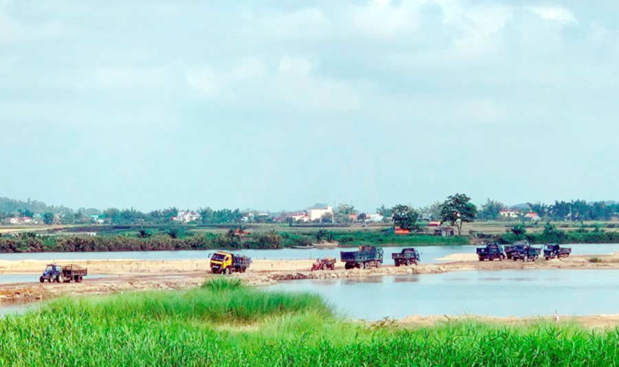 Mỏ cát xây dựng thôn 6, xã Nghĩa Dũng, thành phố Quảng Ngãi là một trong 3 mỏ cát được cấp phép khai thác thông qua đấu giá và còn thời hạn khai thác. Công ty Cổ phần Đầu tư và Phát triển Hợp Nghĩa là đơn vị trúng đấu giá khai thác mỏ cát này với số tiền hơn 18 tỉ đồng. Thời hạn khai thác trong 3 năm, bắt đầu từ năm 2019 với khối lượng gần 220 ngàn m3. Với mức giá bán 70 ngàn đồng 1 m3 cát trong 2 năm qua, doanh nghiệp này than lỗ. Theo tính toán của doanh nghiệp, tất cả các chi phí bỏ ra đã là 140 ngàn đồng 1m3 cát. Ông Lê Đăng Triều, Tổng Giám đốc Công ty Cổ phần Đầu tư và Phát triển Hợp Nghĩa cho biết thêm: "Thời gian vừa qua chúng tôi bán 110 ngàn m3 giá chỉ 70 ngàn đồng. Đúng ra, chúng tôi phải bán ra 160 ngàn mới có lợi nhuận. Chúng tôi bán 70 ngàn vì giá thị trường như vậy, lúc lượng cát lậu, cát trôi nổi nhiều làm cho giá thị trường giảm xuống. Trong khi chúng tôi chỉ có thời hạn 3 năm khai thác nếu chúng tôi không bán kịp thì bị thu hồi, chúng tôi bán vậy để thu hồi vốn. Hiện nay cơ chế quản lý của nhà nước, của tỉnh chặt lại nên mới có cơ hội bán mức giá 140 ngàn, nhưng đây vẫn là giá chưa có lợi nhuận".