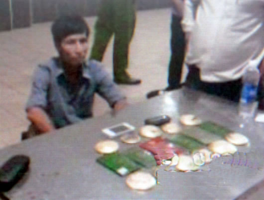 Đặng Gia Khánh và tang vật lúc bị bắt giữ. (Ảnh cắt từ clip) |