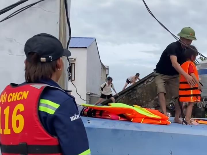 Trong đêm tối mịt mù, giữa tiếng gió rít và dòng nước cuồn cuộn tràn qua các ngõ phố, nhiều nhóm cứu hộ vẫn miệt mài chèo xuồng đi tiếp tế người dân Thái Nguyên. Khi ánh đèn pin quét qua căn nhà cấp bốn ngập gần đến mái, họ nghe thấy tiếng người yếu ớt kêu cứu. Lúc này, cả nhóm quyết định phá cửa, đưa những người già trong nhà ra ngoài giữa màn đêm trắng xóa.