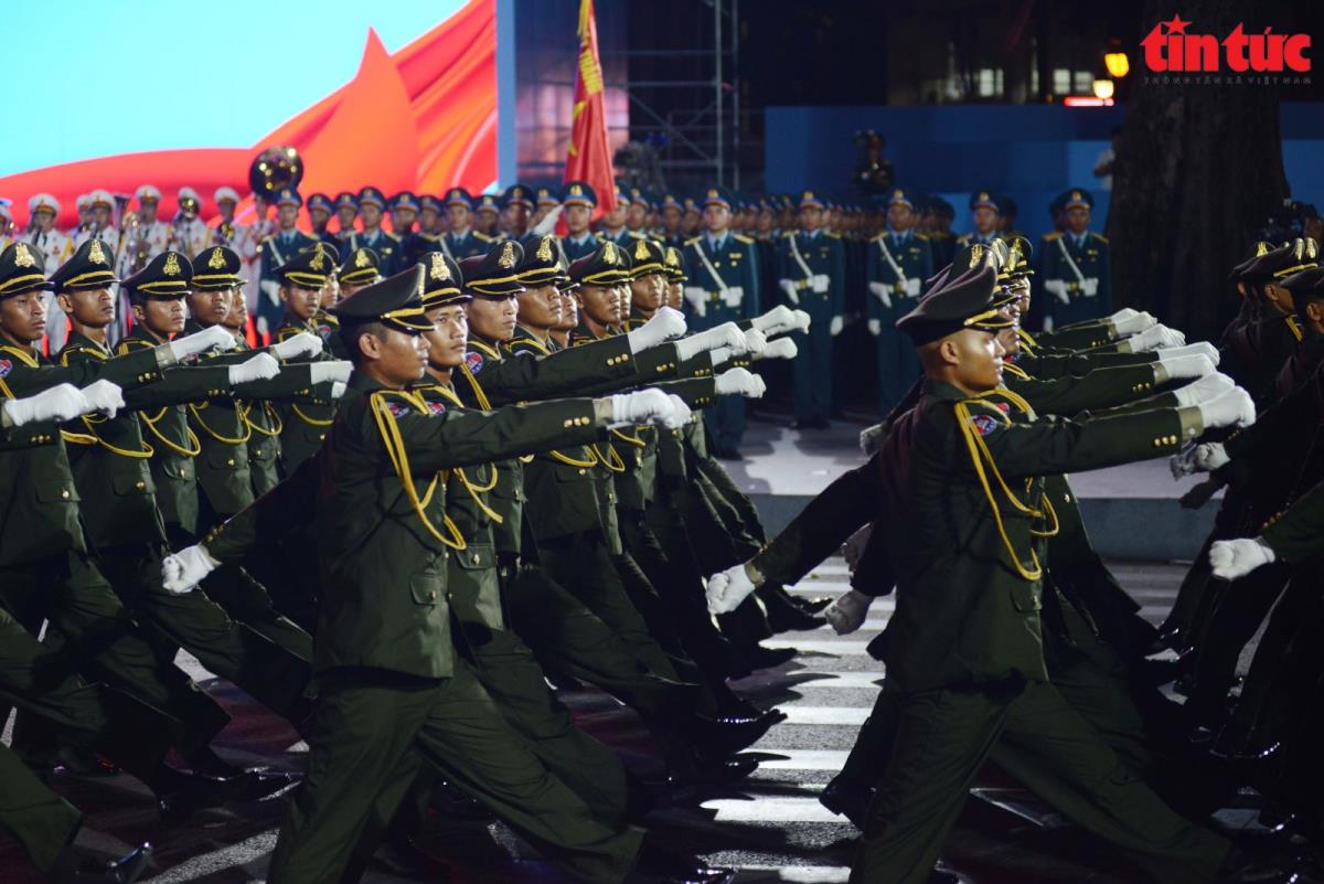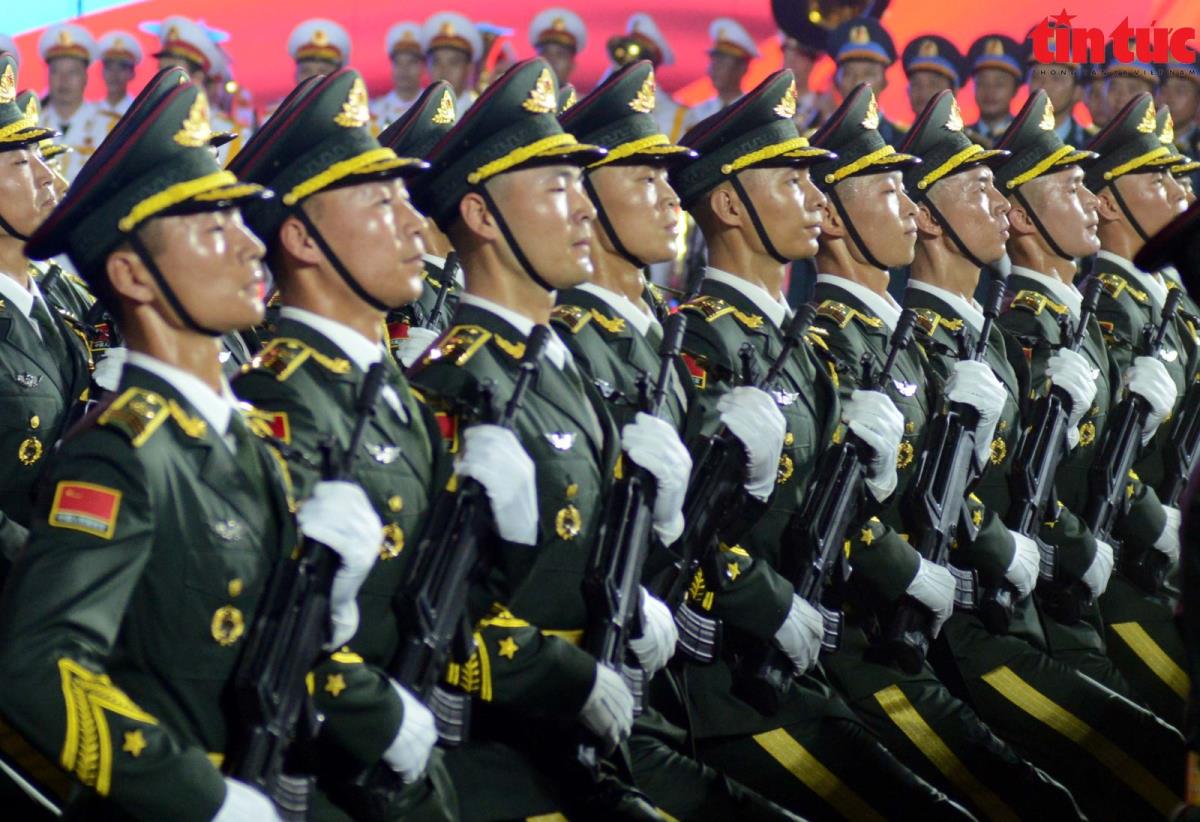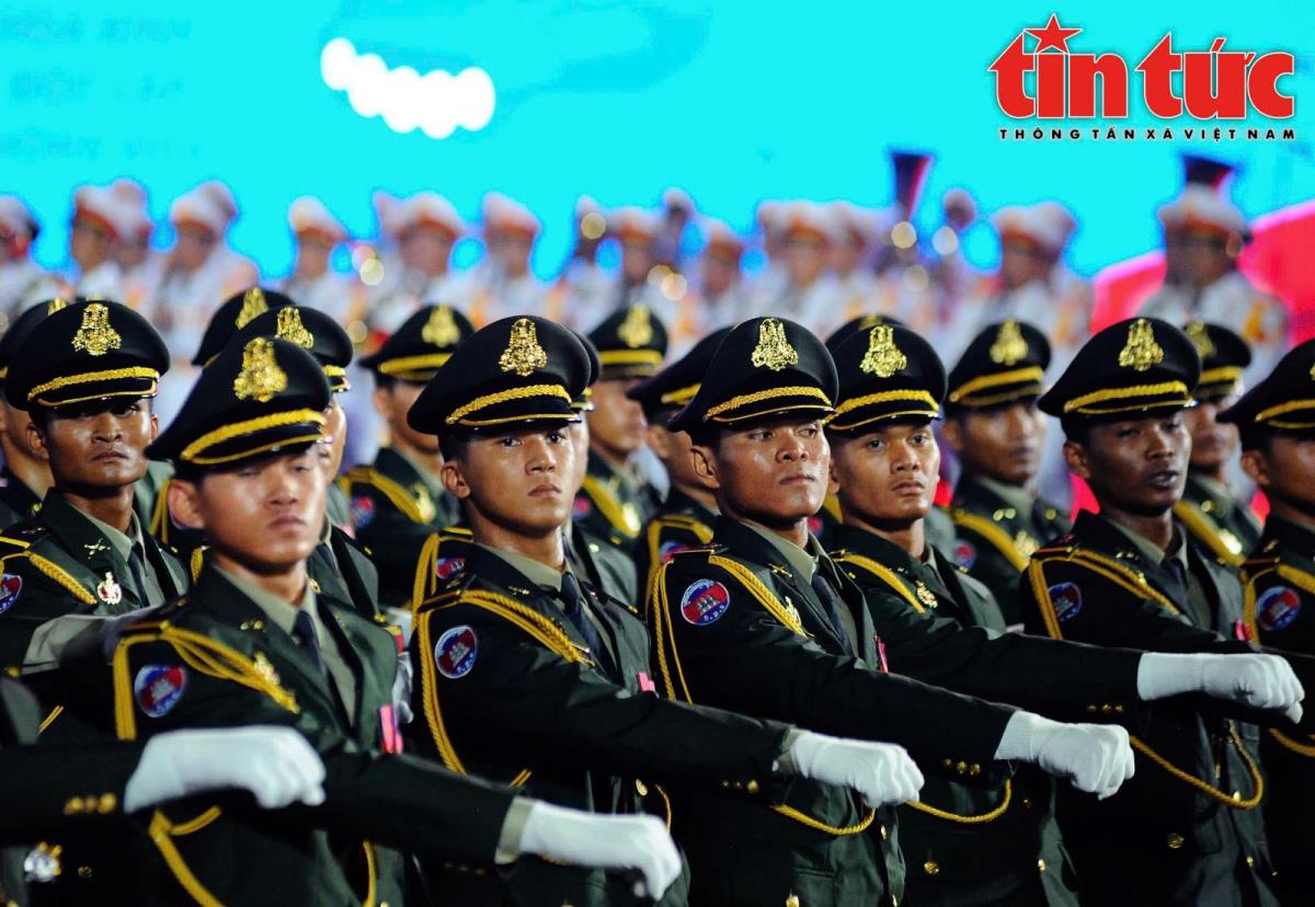 Trong tiếng nhạc hào hùng, những bước chân đều tăm tắp, uy nghi của các đoàn quân quốc tế đã tạo nên hình ảnh xúc động, khắc họa tình hữu nghị bền chặt giữa Việt Nam và các nước láng giềng.