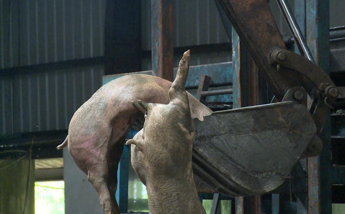 Tiêu hủy toàn bộ số lợn trên xe tải. Ảnh: CTV