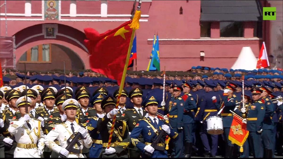 Hình ảnh khối diễu binh Trung Quốc tiến qua lễ đài. Ảnh: RT