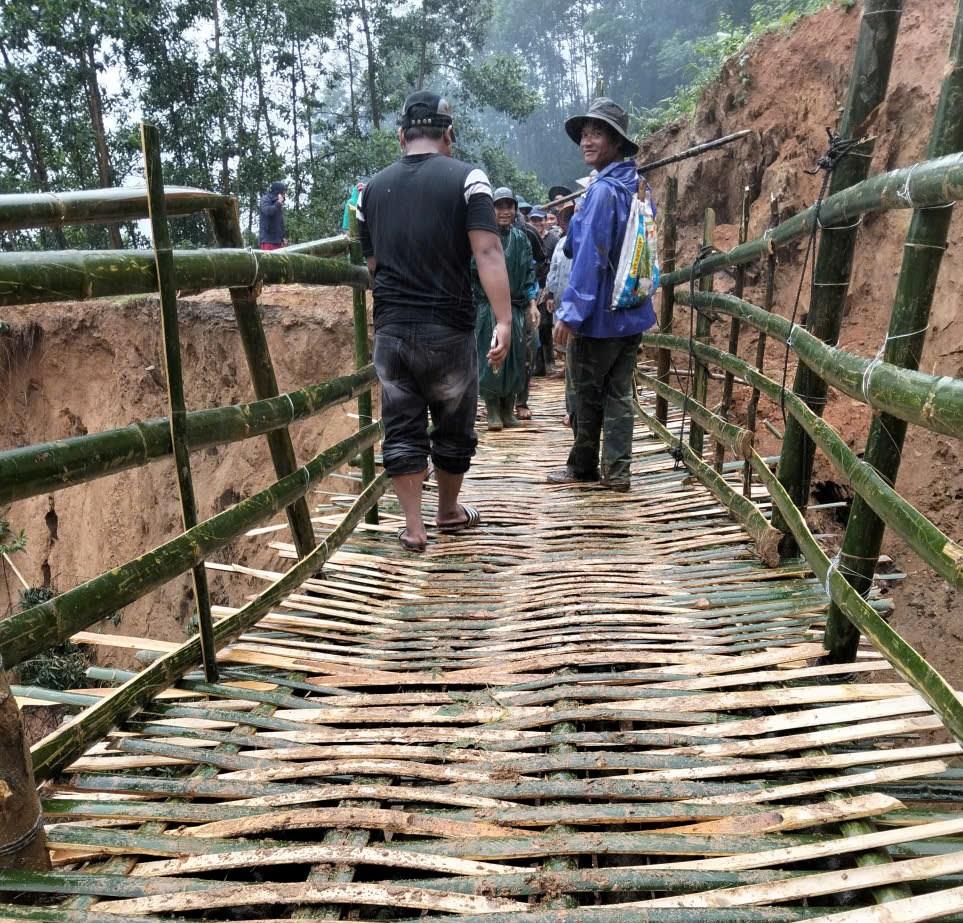 Người dân vùng cao làm cầu tạm để qua điểm sạt lở