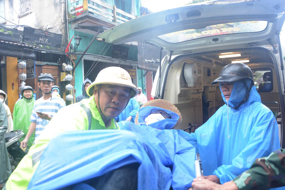 Chiều 28-10, khi nước lũ dâng cao tại phường Điện Bàn, nhiều bệnh nhân và người dân, y bác sỹ tại Bệnh viện đa khoa Điện Bàn bị cô lập bởi nước lụt, cán bộ, chiến sĩ Công an TP Đà Nẵng đã khẩn trương có mặt, huy động ca nô vượt dòng nước xiết để vận chuyển từng bao nhu yếu phẩm, nước uống tiếp tế. Do khu vực bệnh viện bị ngập nặng, không thể tiếp cận bằng đường bộ, điểm tập kết được đặt tại khối phố Cổ An Tây, cách bệnh viện hơn 3km. Tuy nhiên, do nước chảy xiết, lực lượng phải đi đường vòng hơn 5km bằng xuồng máy và ca nô mới tiếp cận được khu vực bệnh viện, nơi tầng 1 đã ngập hoàn toàn.