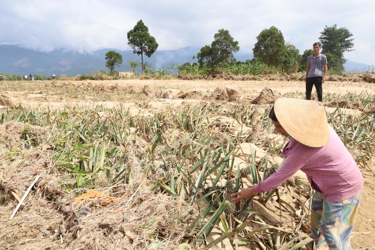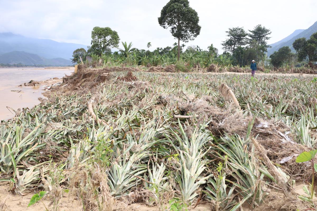 Cánh đồng màu mỡ trồng dứa, bắp chưa kịp thu hoạch nay đã tan hoang.