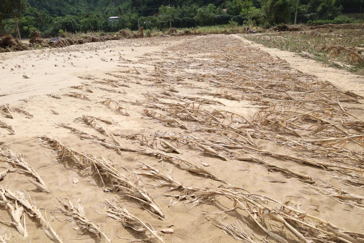 Những ngày qua, hàng trăm người dân sống dọc ven sông Vu Gia chảy qua địa phận các thôn Hòa Hữu Đông, Hòa Hữu Tây, Phước Lâm (xã Hà Nha) ra xem những ruộng vườn của mình còn lại gì để nhặt nhạnh. Tại đây, một khung cảnh tan hoang, tiêu điều hiện ra. Thay thế màu xanh của cây trái chuẩn bị vào vụ thu hoạch, cánh đồng giờ đây chỉ còn trơ lại những cây ngã gẫy, bị cát vùi lấp.