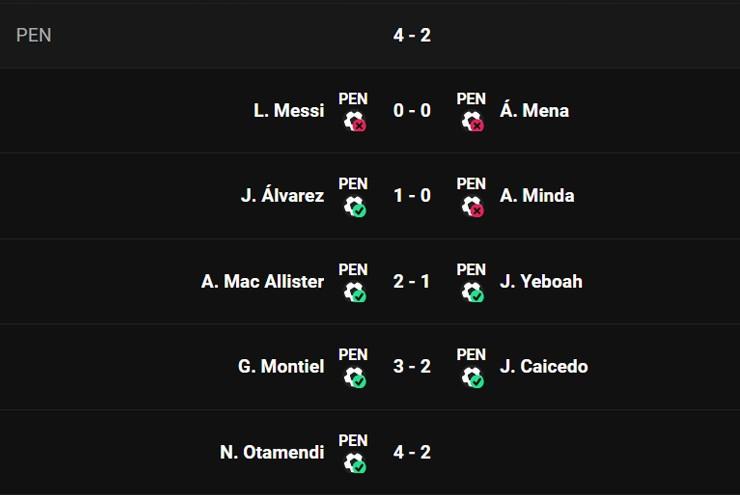Tỷ số chung cuộc: Argentina 1-1 Ecuador (H1: 1-0) (Luân lưu: 4-2)