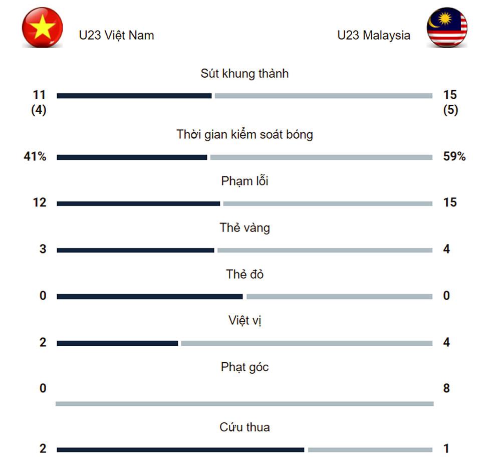 Tỷ số chung cuộc: U23 Việt Nam 2-0 U23 Malaysia (Hiệp 1: 1-0)